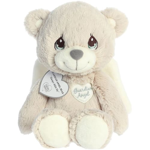 A Precious Moments tem sido uma das marcas inspiradoras mais reconhecidas do mundo nas últimas décadas e agora está disponível em adorável pelúcia Aurora World. Este urso anjo da guarda é uma cor creme com asas de anjo brancas, um coração bordado com "Anjo da Guarda" escrito dentro e adoráveis olhos de lágrima.