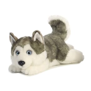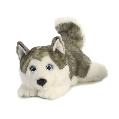 Aurora® Bicho de pelúcia realista Miyoni® Husky mentiroso - Detalhe realista - Companheirismo estimado - Cinza 28 cm