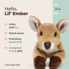Conheça Lil' Ember, o cervo de pelúcia mais doce com pelo sintético extra macio e um rosto adoravelmente expressivo. Este cervo bebê de 23 cm tem enchimento premium, olhos brilhantes e um nariz costurado à mão. Ele se senta em uma posição adorável e parece um verdadeiro cervo da floresta. Delicie-se com presentes de lembrança da Bearington, líder mundial na criação de animais de pelúcia feitos à mão. Perfeito para feriados, aniversários, presentes de formatura e muito mais. - Conheça Lil' Ember: com pele sintética ultramacia, nariz costurado à mão e corpo flexível, este adorável cervo de pelúcia de 22 cm fica como um cervo bebê de verdade e encantará qualquer criança - Ótimo para momentos de abraço: este presente especial é perfeito para o pequeno em sua vida que poderia usar um novo amigo de carinho. Pele sintética de pelúcia, olhos brilhantes e uma expressão doce tornam este animal ideal para se aconchegar na hora de dormir - Delicie-se com presentes Bearington: os animais de pelúcia são ótimos presentes para meninas, meninos e todas as crianças. Este cervo realista trará de volta suas memórias de bambi e é um ótimo presente para qualquer amante de animais - Qualidade Bearington: Conhecida em todo o mundo por tecidos luxuosos e excelente qualidade, cada Bearington é criada com o compromisso de fornecer animais de pelúcia personalizados e feitos à mão - Lembranças para a vida: por mais de um quarto de século, a Bearington é líder na criação de animais de pelúcia premiados e brinquedos de pelúcia para bebês, crianças e adultos. Nossas coleções oferecem tudo, desde ursinhos de pelúcia clássicos a cães realistas, vida selvagem e muito mais