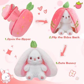 B0BY4ZSSTQ - Algodão PP - ?Material de alta qualidade? Pelúcia de coelho intercambiável: é fácil passar de um morango para um coelho branco, ou de uma cenoura para um coelho branco, basta abrir o zíper. Coelhinho da Páscoa, acabamento fino, bicho de pelúcia adorável e macio é feito com tecidos macios e preenchidos com enchimento macio reciclado. O tamanho deste bicho de pelúcia se encaixa perfeitamente para bebês é fácil de levar um bicho de pelúcia fofo para qualquer lugar, e definitivamente trará um sorriso ao rosto deles. - ?Companheiro confortável?Um lindo travesseiro de pelúcia sorridente, design fofo, toque macio, estilo fofo, para acompanhar você calorosamente. Animais de pelúcia adoráveis super macios que se desdobram em travesseiros felpudos para dormir. Crianças, adolescentes e adultos adoram estas criaturas clássicas colecionáveis e confortáveis. - ?Presente perfeito?Bonito e exclusivo como presente para crianças, amantes de cogumelos de pelúcia, amigos e assim por diante. Crianças de todas as idades vão adorar este brinquedo de pelúcia para brincar como um lindo travesseiro para ler, assistir televisão, estudar e dormir na hora da soneca. Doce presente para o Natal, Dia de Ação de Graças e aniversário. - ?Macio e confortável?Boneca de pelúcia de coelho super macia, preenchida com algodão macio, com toque macio, delicado, saudável e ecológico, realmente confortável, brinquedos de pelúcia de alta qualidade. - ?Garantia sem preocupações-MIAODAM?A boneca de pelúcia de bicho de pelúcia será embalada a vácuo, usando o vapor de água pulverizado pela máquina de engomar, além de bater adequadamente, você receberá um travesseiro fofo de animal fofo. Se você tiver algum problema, com nosso atendimento ao cliente e ajudaremos você a resolver o problema de forma rápida e amigável, com você dentro de 12 horas.