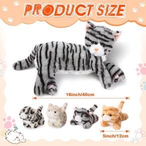 Características: Estes bichos de pelúcia são adequados para festas de chá ou hora de histórias, melhoram a imaginação e a criatividade de meninos e meninas. Eles também podem ser um companheiro favorito para brincar e dormir para crescer, bons amigos quando você se sentir sozinho. A pelúcia de gato de pelúcia pode ser servida como presente para meninas, meninos, amigos, colegas de classe, vizinhos e muito mais, eles ficarão felizes em receber presentes tão delicados. Especificações: Material: algodão PP Cor: como mostrado nas imagens. Tamanho: 16 polegadas/40 cm e 5 polegadas/12 cm A embalagem inclui: 1 bicho de pelúcia de gato. 4 gatinhos de pelúcia. Observações: Medição manual, considere pequenos erros no tamanho. A cor pode existir uma pequena diferença devido a diferentes telas. Adequado para pessoas com mais de 14 anos de idade. - Conjunto de bichos de pelúcia para gatos: o pacote inclui 1 gato mamãe, mede 40 cm, e 4 filhotes medem cerca de 12 cm, vibrantes e fofos, atraem a atenção das pessoas - Presentes confortáveis e adoráveis: preenchidos com algodão PP, esses gatos e gatinhos de pelúcia são macios e confiáveis, inodoros e seguros, podem ser considerados presentes para meninas, meninos, amigos, colegas de classe, vizinhos, etc., eles ficarão felizes em receber presentes tão delicados - Dicas: devido às necessidades de transporte, o brinquedo de pelúcia para gatos é embalado a vácuo, abra depois de receber o pacote, você pode tapá-lo suavemente ou use um ferro a vapor para passar a ferro em baixa temperatura, a pelúcia do gato logo será restaurada à forma autêntico - Design atencioso: com pelo macio, olhos brilhantes e rostos expressivos, esses gatos de pelúcia têm pequenos ímãs na barriga de suas mães e no nariz de cada gatinho que os gatinhos vão fechar de sua mãe assim que os filhotes estiverem perto de sua barriga - Bom companheiro: estes gatinhos de pelúcia podem ser aplicados para festas de chá ou hora de histórias, melhoram a imaginação e a criatividade de meninos e meninas; eles também podem ser um companheiro favorito para brincar e dormir para crescer