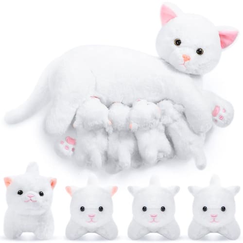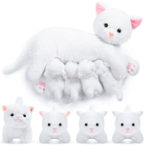 Características: Estes bichos de pelúcia são adequados para festas de chá ou hora de histórias, melhoram a imaginação e a criatividade de meninos e meninas. Eles também podem ser um companheiro favorito para brincar e dormir para crescer, bons amigos quando você se sentir sozinho. A pelúcia de gato de pelúcia pode ser servida como presente para meninas, meninos, amigos, colegas de classe, vizinhos e muito mais, eles ficarão felizes em receber presentes tão delicados. Especificações: Material: algodão PP Cor: como mostrado nas imagens. Tamanho: 16 polegadas/40 cm e 5 polegadas/12 cm A embalagem inclui: 1 bicho de pelúcia de gato. 4 gatinhos de pelúcia. Observações: Medição manual, considere pequenos erros no tamanho. A cor pode existir uma pequena diferença devido a diferentes telas. Adequado para pessoas com mais de 14 anos de idade. - Conjunto de bichos de pelúcia para gatos: o pacote inclui 1 gato mamãe, mede 40 cm, e 4 filhotes medem cerca de 12 cm, vibrantes e fofos, atraem a atenção das pessoas - Presentes confortáveis e adoráveis: preenchidos com algodão PP, esses gatos e gatinhos de pelúcia são macios e confiáveis, inodoros e seguros, podem ser considerados presentes para meninas, meninos, amigos, colegas de classe, vizinhos, etc., eles ficarão felizes em receber presentes tão delicados - Dicas: devido às necessidades de transporte, o brinquedo de pelúcia para gatos é embalado a vácuo, abra depois de receber o pacote, você pode tapá-lo suavemente ou use um ferro a vapor para passar a ferro em baixa temperatura, a pelúcia do gato logo será restaurada à forma autêntico - Design atencioso: com pelo macio, olhos brilhantes e rostos expressivos, esses gatos de pelúcia têm pequenos ímãs na barriga de suas mães e no nariz de cada gatinho que os gatinhos vão fechar de sua mãe assim que os filhotes estiverem perto de sua barriga - Bom companheiro: estes gatinhos de pelúcia podem ser aplicados para festas de chá ou hora de histórias, melhoram a imaginação e a criatividade de meninos e meninas; eles também podem ser um companheiro favorito para brincar e dormir para crescer