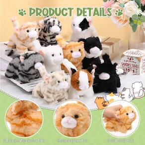 Características: Os gatinhos de pelúcia estão posando em pé, macios e adoráveis, presentes ideais para meninas, meninos e adultos que gostam de gatos. Os bichos de pelúcia para gatos são adequados para lembrancinhas de festa de aniversário, decorações de festa, brinquedos de pelúcia macia, brinquedos de gato, etc. Especificações: Material: tecido de pelúcia, algodão PP Cor: como mostrado na imagem. Tamanho: aprox. 12 - 14 cm. A embalagem inclui: 10 brinquedos de pelúcia para gatos. Observações: Medição manual, considere pequenos erros no tamanho. A cor pode existir uma pequena diferença devido a diferentes telas. - Pelúcia para gatos: o pacote inclui 10 peças de bichos de pelúcia de gatos em cores diferentes; quantidade suficiente e diversas cores podem atender às suas várias necessidades, e você também pode compartilhá-las com sua família e amigos - Tamanho pequeno: cada bicho de pelúcia tem aproximadamente 12 a 14 cm, adequado para as pessoas segurarem e abraçarem, leve, fácil de carregar e não ocupa muito espaço - Seguro e macio: os brinquedos de pelúcia para gatos são feitos de tecido de pelúcia de qualidade, preenchidos com algodão PP, macios e confortáveis de sentir, não desbotam ou quebram facilmente, seguros e confiáveis, reutilizáveis e duráveis - Dicas quentes: pequenos bichos de pelúcia de gatos são transportados em embalagem a vácuo, o que pode causar deformação; depois de receber o pacote e abrir a pelúcia do gato, você pode esfregá-lo e deixá-lo por um curto período de tempo; você também pode colocá-lo em uma máquina de lavar para limpar e secar, ou passar a ferro em baixa temperatura em uma secadora, então a pelúcia do gatinho retornará rapidamente ao seu estado fofo - Vários usos: gatos de animais de pelúcia podem ser amplamente aplicados como decorações fofas para berçário, quarto, casa, sofá, carro, escritório, e também podem ser aplicados como lindos enchimentos de sacolas de presente, centros de mesa, enfeites de meias de Natal, prêmios escolares, etc. ; Eles podem ser dados a amigos, meninos ou meninas que amam gatinhos, e eles vão gostar muito deles