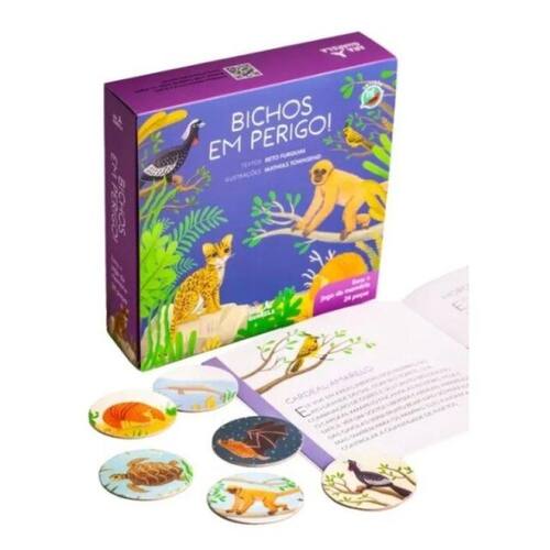 Bichos em Perigo! São animais incríveis, mas correm perigo! Um macaquinho tão elástico que parece de borracha, um micromorceguinho que cabe na palma da mão, um felino que até se pendura num cipó, e uma tartaruga que servia para fazer óculos. Conheça aqui 12 animais fantásticos que estão sob risco de desaparecer. Textos: Cláudio Figueiredo Ilustrações: Mathias Townsend FICHA TÉCNICA Páginas: 16 Formato: 18 x 18 cm Lançamento: novembro/2024 ISBN: 9786598430733 Selo: Araquarela / Coleção Tiê Acompanha: Jogo da memória com 24 peças Marca: Não Informado