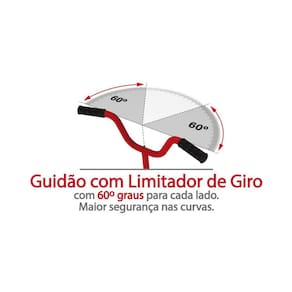 Pneus de borracha com câmara, Freio V-BrakeMovimento de direção e central com esferasGuidão com limitador de giro e regulagem de altura para melhor ergonomiaManoplas em TPE atóxicoCarenagem removívelRodinhas laterais removíveis fixadas no quadro, que ajudam na conquista do equilíbrio e auxiliam na aprendizagemSelim anatômico acolchoado com regulagem de alturaCobre corrente integral