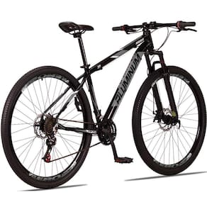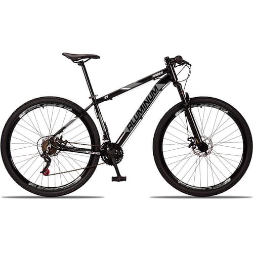 Bicicleta 29 Aluminum Raider 21 Marchas Freio a Disco com Suspensão - 21-Preto+Cinza