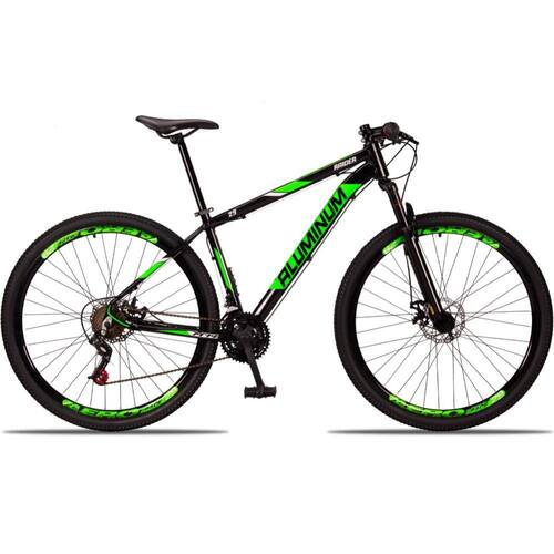 Bicicleta 29 Aluminum Raider 21 Marchas Freio a Disco com Suspensão - 19-Preto+Verde