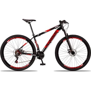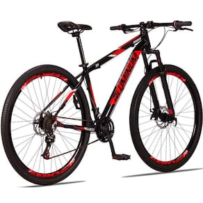 Bicicleta 29 Aluminum Raider 21 Marchas Freio a Disco com Suspensão - 21-Preto+Vermelho