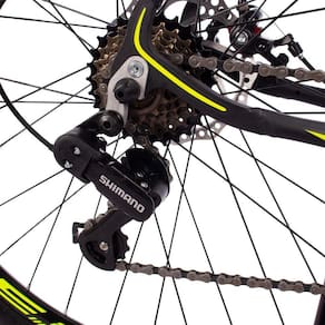 Spaceline Vega é um lançamento 2021, com um quadro de Alumínio de ótima geometria para o MTB e um design exclusivo. Possui 21 combinações de marchas com trocadores rapidfire que facilitam as trocas entre catracas. Uma suspensão de 80mm de amortecimento para absorção de impacto e freio a disco para melhor segurança do ciclista.Quadro Desenvolvido em Alumínio 6061, material que deixa a bicicleta leve e resistente, seu tratamento térmico faz com que o quadro fique mais rígido e seguro. Este novo modelo utiliza a pinça de freio entre os tubos traseiros para proteger de possíveis danos.Suspensão Trabalha através de molas de amortecimento, com um alcance de 80mm de curso, proporcionando melhor conforto.Freios A bike conta com freios a disco mecânico, eles trabalham com pinças com duas pastilhas de freio que fazem a frenagem em um disco de aço de 160mm para melhor desempenho dos freios.Transmissão de Marchas Com Câmbio traseiro shimano e dianteiro importado, o conjunto todo com sistema “index”, uma tecnologia que facilita as trocas de marchas e deixa elas mais suaves. Neste conjunto o cambio dianteiro trabalha com 3 coroas e no câmbio traseiro tem outras 7 catracas, proporcionando 21 combinações de marcha.Pedivela Fabricado em aço passa por um processo industrial de forjamento para maior resistência, com ele acompanha 3 coroas em aço com a tecnologia “index”Rodas Os aros são fabricados com parede dupla de alumínio 6061, é feito um tratamento térmico para maior resistência, é composto de 36 raios e cubos que trabalham com sistema de liberação rápida (quick release) para facilitar as trocas ou retirada das rodas para manutenção ou transporte.Mesa e Guidão A mesa é fabricada em processo de forjamento em alumínio 6061, é superleve e resistente. Trabalha com o padrão 31.8. Nosso Guidão reto também segue com mesmo alumínio para conseguir uma bicicleta leve e confiável.Selim e Canote O selim possui um design anatômico para melhor conforto na pedalada, é fabricado em material RVS e possui trilho para ajuste de posição correta. O Canote é fabricado em alumínio 6061. Detalhes técnicosQUADRO: Quadro 29"" Alumínio 6061 - Spaceline / VegaSUSPENSÃO: Garfo c/ curso de 80mm de amortecimentoCAIXA DE DIREÇÃO: Semi IntegradaGUIDÃO: Reto em Alumínio 6061MESA: 80mm em Alumínio 6061MANOPLAS: Borracha FlexívelTROCADORES DE MARCHAS: Rapid Fire - Engate rápidoFREIOS: Mecânico com disco de 160mmCÂMBIO DIANTEIRO: Importado 3v indexCÂMBIO TRASEIRO: Shimano TZ de 7vPEDIVELA: Triplo em Aço indexPEDAL: Plataforma em NylonCORRENTE: 7v IndexadaRODA LIVRE: 7 Velocidades (Catraca)CANOTE DE SELIM: 27.2mm em Alumínio 6061SELIM: PU com trilho de regulagemCUBOS: Aço 36 furosAROS: Alumínio parede dupla Aero 36 furosPNEU: MTB 29" CRAVO BAIXO Ean: 7908350219086