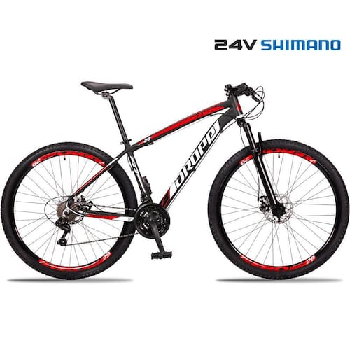 Bicicleta 29 Dropp Z3 Shimano TZ 24 Vel Freio a Disco MTB Alumínio - 17-Preto+Vermelho