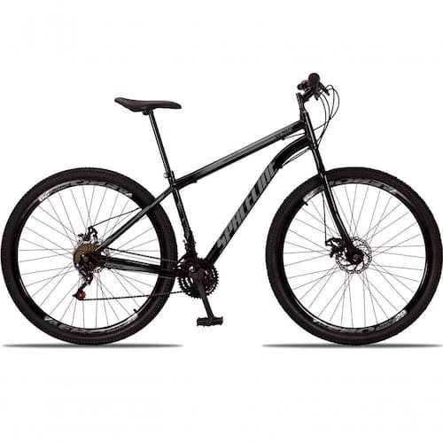 Aro: 29 | Marchas: 21 | Modalidade: Passeio | Suspensão: Sem Suspensão | Material do Quadro: Quadro em Aço | Modelo e Composição do Garfo: Garfo Rígido em Aço | Marca e Modelo do Sistema de Câmbio: Câmbio Dianteiro imp. 3v imp / Câmbio Traseiro imp. 7v imp / Trocador de Marchas Grip Shift - 21v - imp. | Marca e Composição do Pedivela: Pedivela 3 Coroas em Aço | Modelo e Composição do Freio: Freio a Disco 160mm Preto - MECÂNICO | Material da Roda: Aros Aero 36 Furos Folha Dupla Alumínio | Pneus: Pneu 29 (Imp.) | Marca e Composição dos Cubos: Cubos Rosca 36f em aço | Modelo e Composição do Guidão: Guidão Curvo em Aço | Marca e Composição do Selim: Selim Sport | Material do Canote: Aço 22.2 | Importante: Bicicleta para passeios e trilhas leves, não indicada para manobras radicais e trilhas pesadas / Consulte o tamanho de quadro adequado à sua altura antes de realizar a compra. | Montagem do Equipamento: A montagem é de responsabilidade do cliente, sugerimos que seja efetuada por uma oficina especializada. | Garantia do Fabricante: 90 dias. A garantia será validada para as bicicletas montadas e revisadas por uma oficina especializada e é referente apenas ao primeiro proprietário | Informação Relevante: Pode haver alguma diferença de tonalidade entre a imagem e o produto real, por conta do tratamento de imagens e a calibração de cores do monitor Cor: Preto+Cinza
