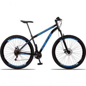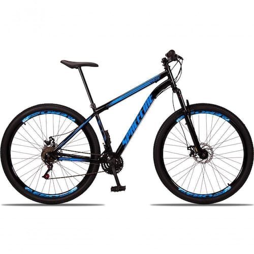 Aro: 29 | Marchas: 21 | Modalidade: Passeio | Suspensão: Dianteira | Material do Quadro: Quadro em Aço | Modelo e Composição do Garfo: Suspensão Preto 29 | Marca e Modelo do Sistema de Câmbio: Câmbio Dianteiro imp. 3v imp / Câmbio Traseiro imp. 7v imp / Trocador de Marchas Grip Shift - 21v - imp. | Marca e Composição do Pedivela: Pedivela 3 Coroas em Aço | Modelo e Composição do Freio: Freio a Disco 160mm Preto - MECÂNICO | Material da Roda: Aros Aero 36 Furos Folha Dupla Alumínio | Pneus: Pneu 29 (Imp.) | Marca e Composição dos Cubos: Cubos Rosca 36f em aço | Modelo e Composição do Guidão: Guidão Reto em Alumínio | Marca e Composição do Selim: Selim Sport | Material do Canote: Aço 22.2 | Importante: Bicicleta para passeios e trilhas leves, não indicada para manobras radicais e trilhas pesadas / Consulte o tamanho de quadro adequado à sua altura antes de realizar a compra. | Montagem do Equipamento: A montagem é de responsabilidade do cliente, sugerimos que seja efetuada por uma oficina especializada. | Garantia do Fabricante: 90 dias. A garantia será validada para as bicicletas montadas e revisadas por uma oficina especializada e é referente apenas ao primeiro proprietário | Informação Relevante: Pode haver alguma diferença de tonalidade entre a imagem e o produto real, por conta do tratamento de imagens e a calibração de cores do monitor Cor: Preto+Azul