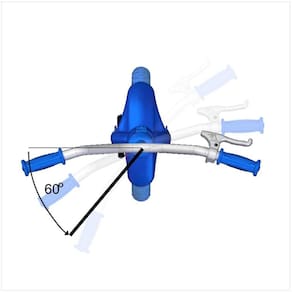 Possui limitador de giro do guidão, importante característica que evita com que guidão dê uma volta completa e danifique o freio, além de preservar a integridade física da criança