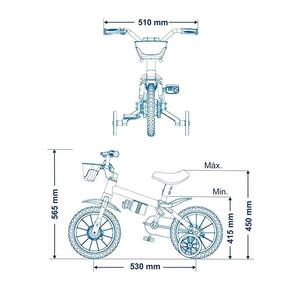 Tamanho da roda: 12 Altura máxima recomendada: 90 cm a 100 cm Peso máximo recomendado: 21 kg Peso do produto: 3,980 Kg Dimensões do produto CxAxL: 82 cm x 55 cm x 50 cm