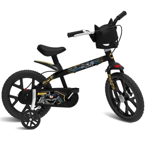 Os pequenos fãs do Batman vão se apaixonar pela Bicicleta Infantil Bandeirante. Na cor preta, característica do personagem, ela apresenta estampas incríveis do super-herói. De aro 14, a bike é super bem equipada e acompanha uma máscara removível, igual a que é usada pelo personagem. O acessório, além de deixar a bike superestilosa, pode ser usado pela criança!