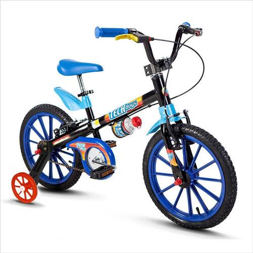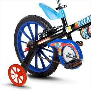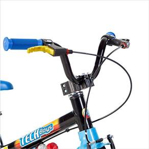 A bicicleta Tech Boys Aro 16 da Nathor possui limitador de giro do guidão, importante característica que evita com que guidão dê uma volta completa e danifique o freio, além de preservar a integridade física da criança.