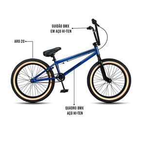 Já no quesito características técnicas as expectativas são superadas mais uma vez, contém uma cor linda no Azul! Os pneus são largos, resistentes contedo uma faixa bege. O Quadro e guidão reto e pegs são construídos em Aço Hi-Ten, um aço excepcionalmente durável, leve e altamente resistente a oxidação e impactos típicos da prática esportiva do BMX. Para completar, os freios são U-Brake, Aro 20, super reforçado para realizar manobras radicais, com segurança e confiança e, ainda, pedivela monobloco. Tudo para garantir uma experiência incrível e inesquecível.
