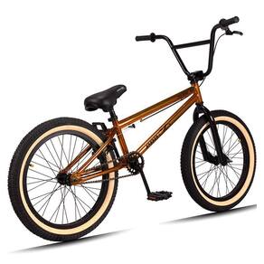 Já no quesito características técnicas as expectativas são superadas mais uma vez, contém uma cor linda no Cobre! Os pneus são largos, resistentes contedo uma faixa bege. O Quadro e guidão reto e pegs são construídos em Aço Hi-Ten, um aço excepcionalmente durável, leve e altamente resistente a oxidação e impactos típicos da prática esportiva do BMX. Para completar, os freios são U-Brake, Aro 20, super reforçado para realizar manobras radicais, com segurança e confiança e, ainda, pedivela monobloco. Tudo para garantir uma experiência incrível e inesquecível.Sem dúvidas é a escolha ideal para proporcionar momentos de diversão marcados com amor e carinho! Aproveite e adicione ao seu carrinho agora mesmo.