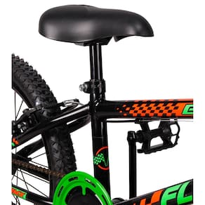 A Bicicleta BMX FLAY Aro 20 é ideal para crianças a partir de 6 anos que adoram aventura e diversão ao ar livre Com visual radical e estrutura reforçada, ela garante segurança e estilo nas manobras e passeios. Perfeita para criar memórias incríveis na infância com muito movimento e liberdade Quadro em Aço carbono Guidão em Aço carbono Garfo em Aço carbono Aro Aero em alumínio com parede dupla Freios V-Brake - Nylon Manete em Nylon Mesinha em Alumínio Caixa de Direção Standard Movimento Central 45mm Pedivela Monobloco Coroa 36 Dentes Catraca 18 Dentes Cubos 3/8 36 Furos Pedal simples em Nylon Rosca Fina 1/2 Canote em aço 22.2mm Selim P.U. Manopla em borracha Abraçadeira com porca - : 3 meses - Necessita montagem não acompanha ferramentas / não acompanha manual - A montagem é responsabilidade do cliente deve ser feita em oficina especializada - Peças podem ser diferentes da imagem devido lote de fabricação - A cor do produto pode ser ligeiramente diferente, devido variações de telas. - Peso Suportado: 80kg - Idade Recomendada: A partir de 6 Anos ou 120cm à 145cm de altura - Não indicado para manobras radicais Marca: Não Informado