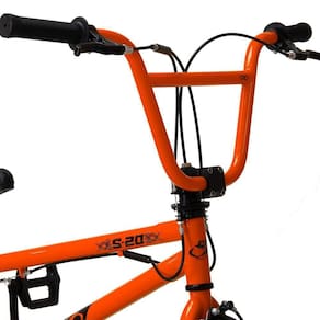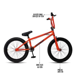 Já no quesito características técnicas as expectativas são superadas mais uma vez, pois conta com pneus de faixa bege largos e resistentes, guidão reto e pegs de aço. O Quadro e guidão são construídos em Aço Hi-Ten, um aço excepcionalmente durável, leve e altamente resistente a oxidação e impactos típicos da prática esportiva do BMX. Para completar, os freios são U-Brake, Aro 20, super reforçado para realizar manobras radicais, com segurança e confiança e, ainda, pedivela monobloco. Tudo para garantir uma experiência incrível e inesquecível.