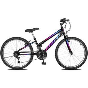 Com aro 24 e quadro em aço resistente, este modelo proporciona estabilidade e uma pedalada suave. Seu design moderno conquista pela beleza e praticidade, sendo uma ótima escolha para momentos de lazer.