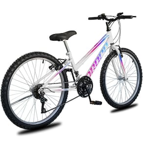 Com aro 24 e quadro em aço resistente, este modelo proporciona estabilidade e uma pedalada suave. Seu design moderno conquista pela beleza e praticidade, sendo uma ótima escolha para momentos de lazer.