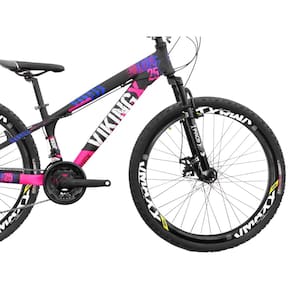 Bicicleta Aro 26 Alumínio Viking Tuff X 25 Freeride F. Disco 21V Grupo Shimano Tourney Suspensão Dianteira - Cor: Preto+Rosa