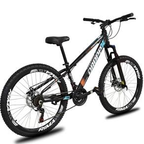 Bicicleta aro 26 Dropp Freeride Alumínio 21 Vel Marchas Câmbios Shimano Freios a disco - Preto+Azul+Laranja