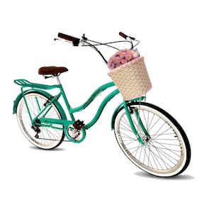 Bicicleta aro 26 feminina retrô com cesta tipo vime 6v verde