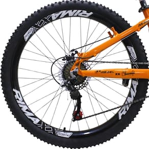 Conta com suspensão dianteira com curso de 80mm, garantindo absorção de impacto nos terrenos mais irregulares. Os freios a disco oferecem frenagens mais seguras e confiáveis.