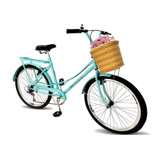 Bicicleta Aro 26 retrô cesta tipo vime 6 marchas mary