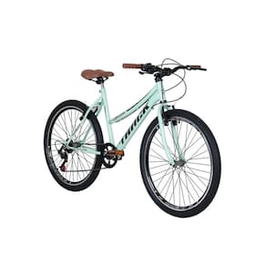 A Bicicleta Aro 26 Track Serena MT Verde Menta é perfeita para quem busca praticidade e estilo no dia a dia. Com quadro tamanho 18 em aço resistente e garfo também em aço, oferece firmeza e durabilidade. Equipada com câmbio Track Index EZ Fire de 7 marchas, adapta-se a diferentes percursos, garantindo uma pedalada mais leve e eficiente. Os freios V-Brake em nylon proporcionam segurança nas frenagens, enquanto os pneus aro 26 com cravo asseguram melhor aderência em terrenos urbanos ou levemente irregulares. O selim conforto, o guidão em aço e as manoplas plásticas ergonômicas tornam o uso agradável. Suporta até 90kg e acompanha kit com pedais, banco e canote.