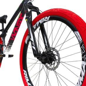 Equipada com transmissão 3x7 (21 velocidades), ela garante versatilidade para diferentes tipos de terreno. A suspensão dianteira de 80mm absorve impactos, tornando o pedal mais confortável, e os freios a disco mecânicos entregam segurança com manutenção mais simples.