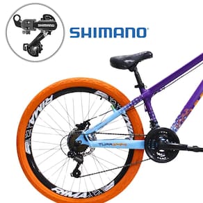 Equipada com transmissão 3x7, totalizando 21 velocidades, ela oferece versatilidade para subidas e retas. Os freios a disco hidráulicos proporcionam frenagens seguras, enquanto a suspensão dianteira de 80mm absorve impactos, garantindo conforto em qualquer terreno.