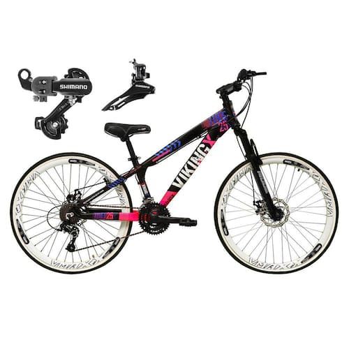 Bicicleta Aro 26 Vikingx Tuff 21v Alumínio Câmbio Shimano Freio a Disco Aros Vmaxx Branco - Preto\Rosa X25