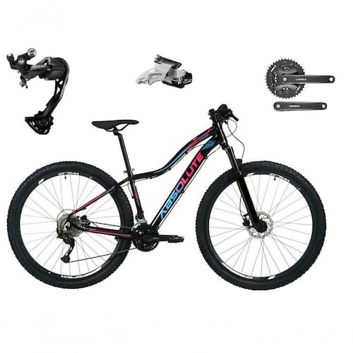 Bike aro 29, com quadro Absolute Hera, nova na caixa a pronta , produto com ótima qualidade e acabamento, possui 27 marchas com sistema de alavancas rapid fire que a cada clique uma marcha é trocada, câmbio dianteiro shimano altus e traseiro shimano alívio M3100 sgs, garfo com suspensão e sistema de trava no guidão para melhor performance, sistema de freio a disco hidráulico, pneus com cravo baixo para uso em terra e asfalto. Bicicleta pré montada, vai precisar apenas fixar a roda dianteira, guidão, selim e pedais. Segue abaixo características da bike: