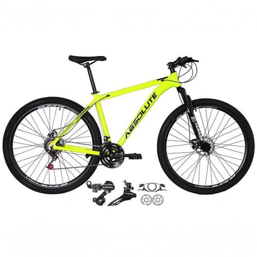 Bike aro 29 , com quadro Absolute Nero 4, nova na caixa a pronta , produto com ótima qualidade e acabamento, possui câmbio dianteiro e traseiro Shimano, Freios a disco hidráulico (óleo), 21 marchas com sistema de alavancas rapid fire que a cada clique uma marcha é trocada, garfo com suspensão. Bicicleta pré montada, vai precisar apenas fixar a roda dianteira, guidão, selim e pedais. Segue abaixo características da bike:
