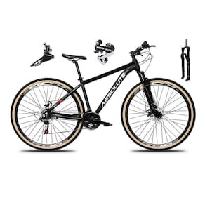 Bike aro 29 em alumínio Absolute Nero 5, nova na caixa a , produto com ótima qualidade e acabamento, possui 24 marchas com sistema de alavancas rapid fire que a cada clique uma marcha é trocada, garfo com suspensão, sistema de freio a disco mecânico, câmbio dianteiro Shimano Tz e traseiro Shimano Acera M360. Garfo com trava no ombro e regulagem, sistema de cubos e catraca k7 de encaixe. Bicicleta pré montada, vai precisar apenas fixar a roda dianteira, guidão, selim e pedais. Segue abaixo características da bike: Quadro 29 Absolute Nero 5 em alumínio Garfo 29 suspensão curso 100mm com Trava Suporte do guidão em alumínio pretoGuidão em alumínio preto Canote do selim com carrinho Selim Sport preto Abraçadeira do Selim alumínio Preto Aros Aero Parede dupla reforçado Raios Pretos Cubos Pretos Alumínio k7 Pneus 29 cravudos Movimento central selado rolamentado Freios a disco Mecânicos com discos inox 160mm Alavancas Semi-automáticas Rapid Fire Câmbio Traseiro Index Shimano Acera m360 Câmbio Dianteiro Index Shimano Tz Corrente Index 24v Pedivela Aço Revestido Pedal Plataforma Nylon preto Cassete 8v gta sunrun (encaixe) ;