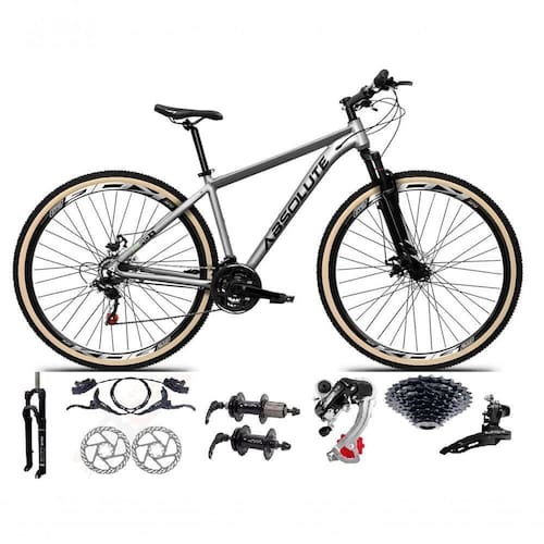 Bicicleta Aro 29 Absolute Nero 5 Câmbios Shimano 24v K7 Freios Hidráulicos Garfo Trava Com Pneu Faixa - Cinza