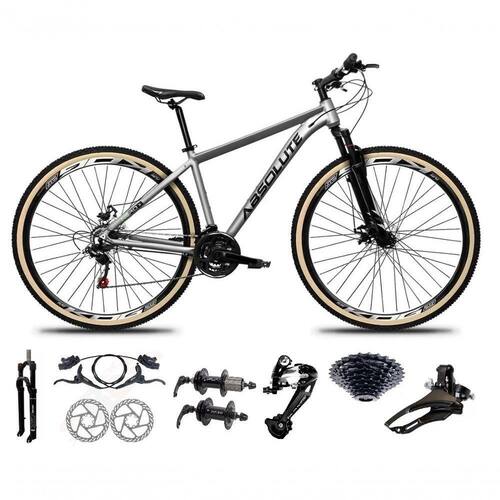 Bicicleta Aro 29 Absolute Nero 5 Freio Hidráulico K7 27v Garfo Com Trava Pneu Com Faixa - Cinza