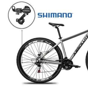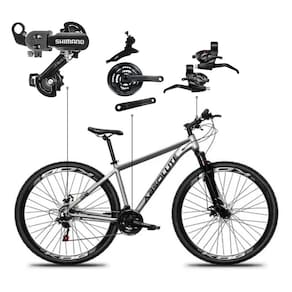 Equipada com freios a disco, proporciona frenagens mais seguras mesmo em terrenos irregulares ou molhados. Destaque para o câmbio traseiro Shimano, que assegura trocas suaves e durabilidade.