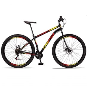 Suspensão: Rigida | Modalidade: Mountain Bike | Aro: 29 | Marchas: 21 Cor: Preto/Amarelo e Vermelho
