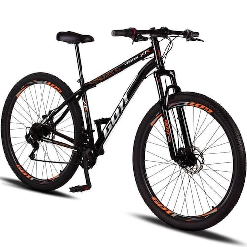 Marca: Gott Bike | Linha: Aro 29 MTB - Vortex RX | Modelo: 21vl Moutain bike Passeio freio a disco - Cronos | Idade: Adultos | Gênero: Sem gênero | Material do quadro: Aço Carbono | Aro: 29 | Quantidade de Velocidades: 21 | Peso: 16 | Peso máximo suportado: 120 | Tipo de Bicicleta: Moutain Bike Passeio | Com pé de apoio: Não | Com rodas de treinamento: Não | Com cesto: Não | Com impacto positivo: Sim | Câmbios dianteitos: 3vl | Câmbios Traseiros: 7vl | É dobrável: Não | Requer montagem: Sim | Marchas: 21 | Inclui manual de montagem: Não | Modalidade: Moutain Bike | Suspensão: Dianteira | Preto/Laranja