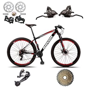 A bicicleta Ravok foi desenvolvida para quem quer realizar passeios e pegar trilhas. Com seu quadro em alumínio 6061, fornece segurança e leveza no seu pedal.O modelo possui 27 velocidades, freio a disco mecânico que proporciona segurança nas frenagens e suspensão dianteira para um passeio confortável em diversos tipos de terrenos.Disponível em diversas cores que garante um estilo próprio para você.Veja abaixo a descrição detalhada dos componentes:QUADRO: Alumínio 6061.SUSPENSÃO: Aro 29ALAVANCA/TROCADOR: rápid fire- 27vCÂMBIO TRASEIRO: 9vCÂMBIO DIANTEIRO: 3vCASSETE: 9V indexPEDIVELA: Triplo em aço revestido 24/34/42 indexCORRENTE: index 9vFREIOS: Disco mecânicoCUBOS: 36 Furos esferados com brocagemAROS: Aero em alumínio parede dupla 36fPNEUS: Aro 29 x 2,10 MTB cravo baixoCÂMARA DE AR: 29 x 1.95 bico grossoMOVIMENTO CENTRAL: Roller 122.5 Preto SeladoMOVIMENTO DE DIREÇÃO: Aheadset Preto semi integradoESPAÇADOR: Aheadset Em AlumínioGUIDÃO: expandido em alumínio - PretoSUPORTE DE GUIDÃO: Preto em Alumínio 31,8mmCANOTE DE SELIM: Preto em Alumínio 27,2x350mmBANCO / SELIM: Sport PU MTBABRAÇADEIRA: 31,8mm em Alumínio PretoPEDAL: Nylon plataforma pretoOBS: IMAGEM MERAMENTE ILUSTRATIVA, BIKE VAI CONFORME DESCRIÇÃORECOMENDAÇÃO DE TAMANHOSAltura do ciclista: 1,65 até 1,71m ? Tamanho de quadro 15Altura do ciclista: 1,72 até 1,76m ? Tamanho de quadro 17Altura do ciclista: 1,77 até 1,82m ? Tamanho de quadro 19Altura do ciclista: 1,83 até 1,90m ou mais ? Tamanho de quadro 21MONTAGEM- A bicicleta é montada, porém, para acomodação na embalagem e transporte, algumas peças são enviadas desmontadas.- A instalação é de responsabilidade do consumidor, orientamos que seja efetuada por mão de obra especializada.- Por motivo de transporte e manuseio, pode haver a necessidade de efetuar uma revisão (câmbios, freios) ao receber o produto.GARANTIA - Fábrica / 3 MesesNÃO COBRE DEFEITOS POR MAU USO OU PELA MONTAGEM / REVISÃO INADEQUADA DO PRODUTO.- A garantia será validada para as bicicletas montadas e revisadas por uma oficina especializada e é referente apenas ao primeiro proprietário.- A garantia não se aplica para os itens de desgaste natural tais como: Pneu, câmaras, cabos, pastilhas de freio, centragem de aros, pintura do quadro, componentes da transmissão (corrente, engrenagens do pedivela, engrenagens do cassete ou roda livre)..OUTRAS OBSERVAÇÕES:- As fotos do anúncio são feitas com quadros do tamanho 17''.- A geometria do quadro (desenho) pode mudar conforme o tamanho escolhido alterando a inclinação do tubo superior.- Pode haver alguma diferença de tonalidade entre a imagem e o produto real, por conta do tratamento de imagens e a calibração de cores da sua tela.- Dependendo o lote do produto, algumas peças podem ter cores diferentes da imagem.