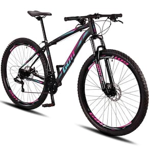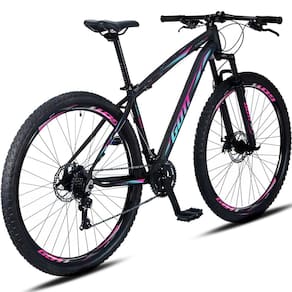 A Bicicleta T-Force aro 29 conta com câmbio Shimano de 21 velocidades, oferecendo trocas de marcha suaves e confiáveis. O quadro em alumínio 6061, combinado com freios a disco mecânicos e aro aero de parede dupla, forma um conjunto robusto, ideal para uso diário e trilhas leves. A suspensão mecânica e o selim MTB garantem conforto e estabilidade em diversos tipos de percurso.