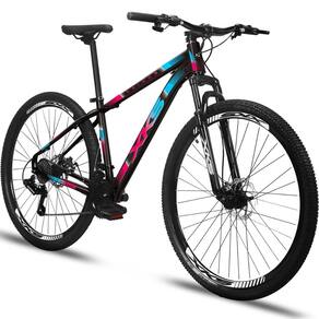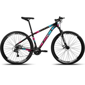 Bicicleta Aro 29 Aluminio Kairos Freio A Disco 21 Marchas Shimano - 17-PRETO COM ROSA E AZUL