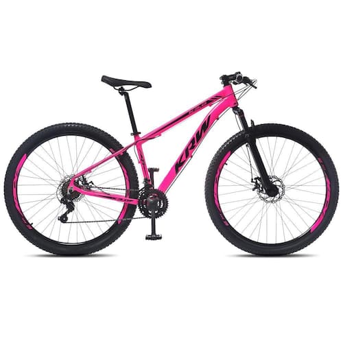 Bicicleta aro 29 Alumínio KRW Shimano 24 Velocidades Marchas Freio a Disco Suspensão dianteira K11 - 15.5-Rosa/Preto