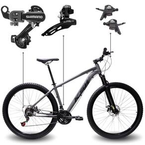 Especificações Técnicas: Aro 29 ? maior rolagem e eficiência Quadro em alumínio ? leveza e resistência? 21 marchas ? versatilidade para diferentes terrenos Câmbios dianteiro e traseiro SH TZ31 ? qualidade e confiança Freios a disco hidráulicos ? precisão e potência na frenagem? Montagem: