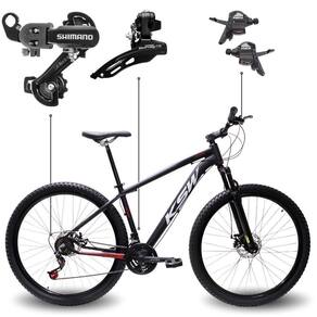 Especificações Técnicas: Aro 29 ? maior rolagem e eficiência Quadro em alumínio ? leveza e resistência? 21 marchas ? versatilidade para diferentes terrenos Câmbios dianteiro e traseiro SH TZ31 ? qualidade e confiança Freios a disco hidráulicos ? precisão e potência na frenagem? Montagem: