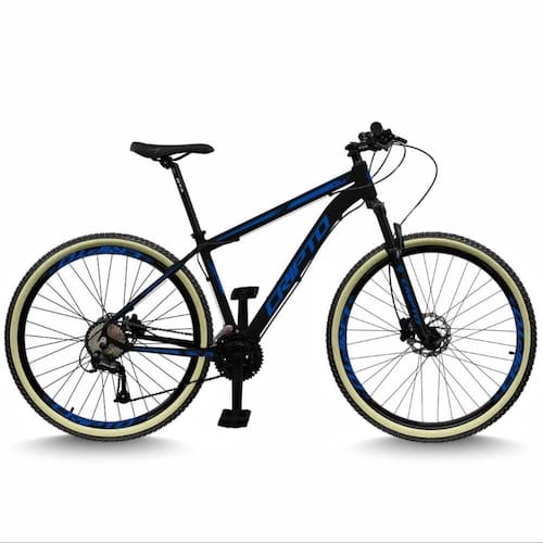 Suspensão: Dianteira | Modalidade: Mountain Bike | Aro: 29 | Marchas: 24 Cor: Preto/Azul